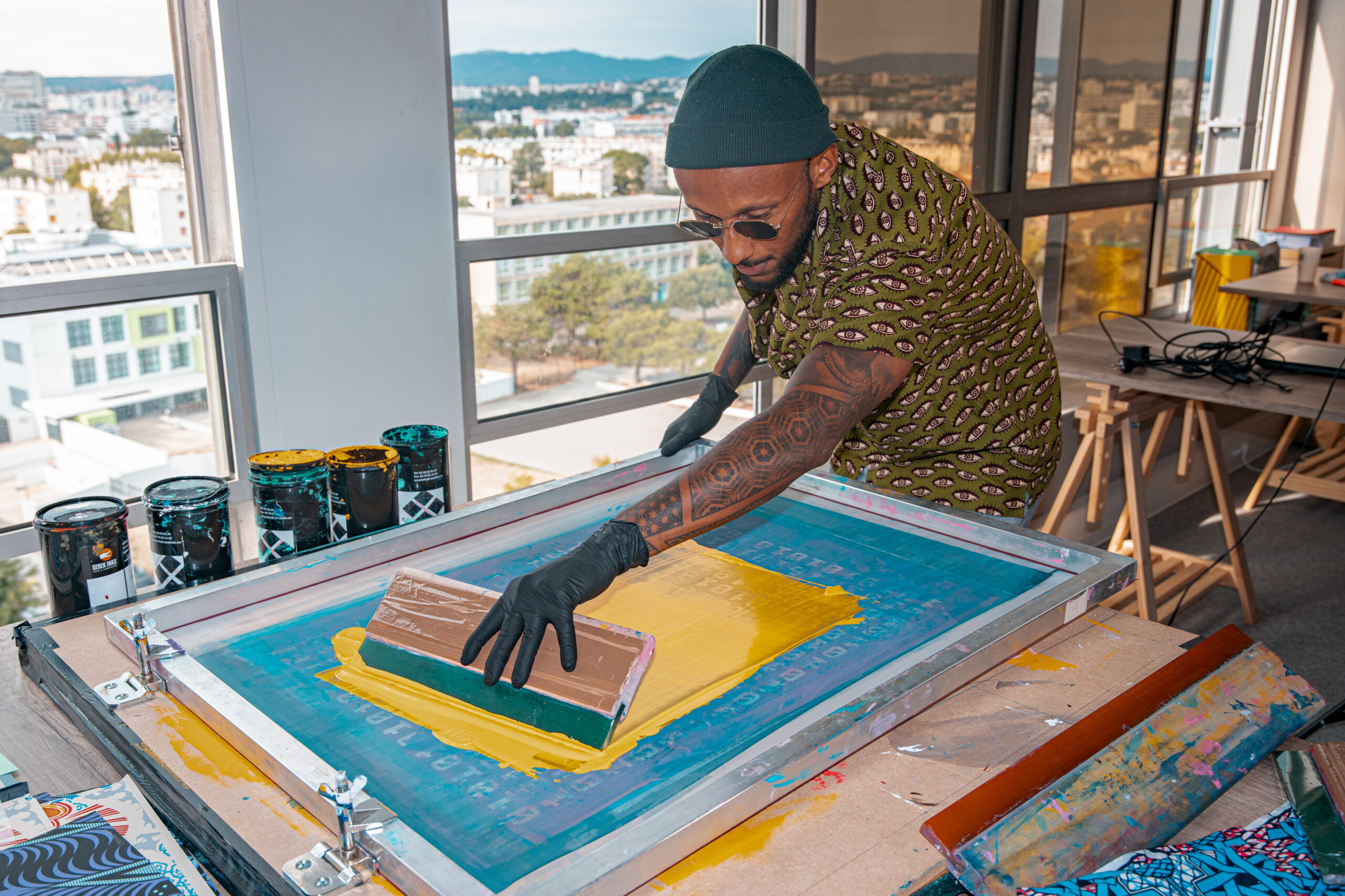The artist begin to work on projects that are more introspective, when he falls in love with wax prints shops inthe African neighborhood of Paris “Chateau Rouge”, where he used to live at the time. This emblematic fabric situated at a crossroads between three continents – Europe, Asia and Africa, brings him back to his own mixed identity, a multiculturalism the artist wants to interrogate through his work.
